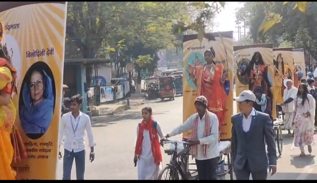 रंग-बिरंगी झांकियों, पारंपरिक वेशभूषा और सांस्कृतिक प्रस्तुतियों से सजी यह झांकी शहर के मुख्य मार्ग से होते हुए रणधीर वर्मा चौक पहुंची और वहां से न्यू टाउन हॉल में आकर संपन्न हुई।