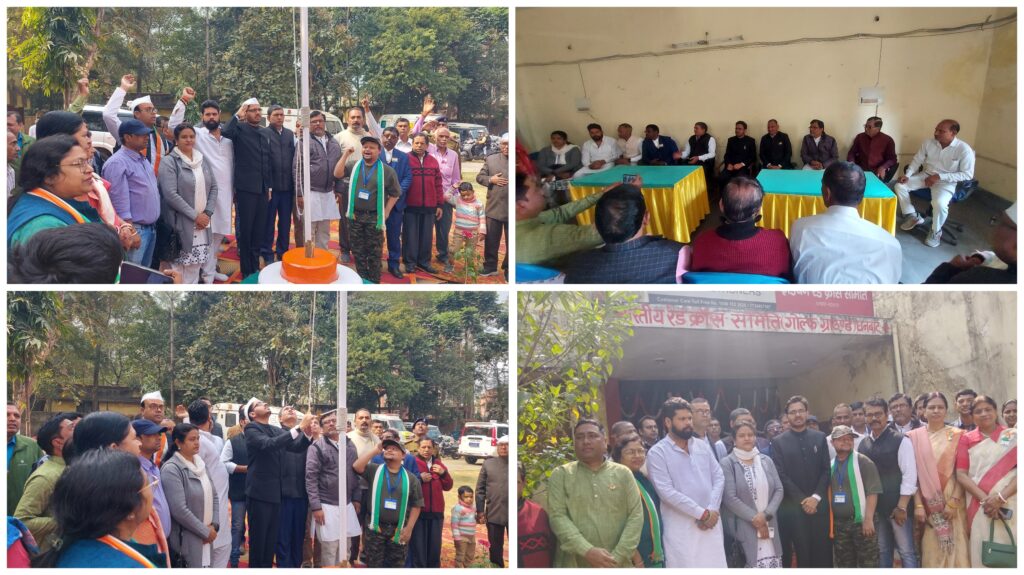 धनबाद: भारतीय रेडक्रॉस सोसाइटीज, धनबाद में 77 वें गणतंत्र दिवस समारोह में भारतीय रेडक्रॉस सोसाइटीज धनबाद के पदेन उपाध्यक्ष सह सदर अनुमंडल दंडाधिकारी श्री लोकेश बारंगे ने झंडोत्तोलन किया। इस अवसर पर भारतीय रेडक्रॉस सोसाइटीज,धनबाद के सचिव श्री रविन्द्र नाथ ठाकुर, चेयरमैन कौशलेंद्र कुमार सिंह, वाईस चेयरमैन धनेश्वर महतो, संयुक्त सचिव दिलीप सिंह, कोषाध्यक्ष श्रीमती श्वेतांबरा पाठक, चेयरमैन सलाहकार सह कार्यकारिणी सदस्य कुमार मधुरेन्द्र सिंह, राम प्रवेश सिंह, सीओ, नोडल वाहन देवेन्द्र कुमार, नोडल ब्लड डोनेशन प्रोग्राम बेनजीर परवीन, नोडल स्वास्थ्य डाॅ जिम्मी अभिषेक, रीना लायक, आइएमए अध्यक्ष डाॅ ए.के. सिंह, डाॅ वाई एन नरुला, राजेश्वर सिंह, एडवोकेट बिजेंद्र कुमार सिंह, वाइस पैटराॅन सह कार्यपालक दंडाधिकारी नारायण राम, लीला माजी, अजीत कुमार, राजेश मिश्रा, अमित सिंह, सुजीत कुमार रजक,पवन ओझा, मनीष रंजन, हेमराज चौहान, रामवतार मोदी , संजीव रंजन, रंजीत जायसवाल, वीरचंद ठाकुर, अनीता अग्रवाल, डाॅ राजकुमार समादार, डाॅ पी के सिन्हा, सिद्धनाथ सिंह, मिथिलेश प्रसाद, संजय कुमार, आर के सिंह, लक्ष्मी नारायण, कृष्ण कुमार वर्मा, कलीम, असगर, विजय कुमार मंगत, विनोद कुमार सहित कई लोग उपस्थित थे।