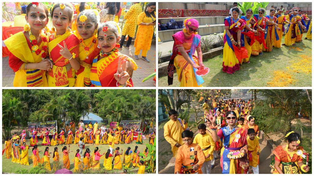 अतिथियों का स्वागत बच्चों ने फूल एवं हर्बल गुलाल से किया। कार्यक्रम की शुरुआत ग्रूमिंग क्लब द्वारा रवींद्र संगीत “ओरे गृहोबासी”पर पार्क परिक्रमा नृत्य से हुई। इसके बाद विभिन्न नृत्य विद्यालयों की छात्राओं ने बसंत पर आधारित रवींद्र नृत्य प्रस्तुत किए।