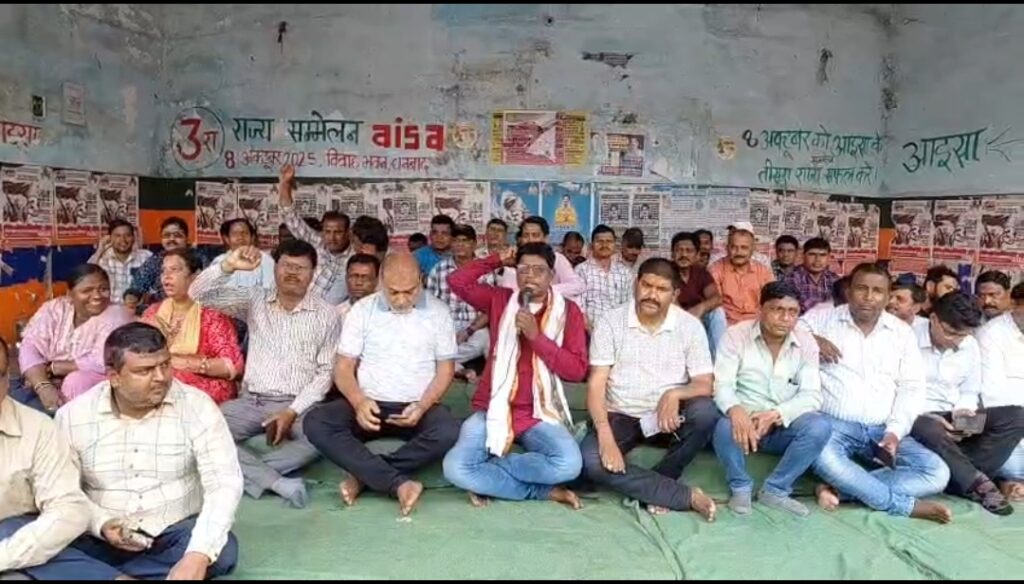 धनबाद: झारखंड राज्य मनरेगा कर्मचारी संघ के बैनर तले मंगलवार को रणधीर वर्मा चौक स्थित धरना स्थल पर मनरेगा कर्मचारियों ने अपनी विभिन्न मांगों को लेकर धरना प्रदर्शन किया। धरना में बड़ी संख्या में कर्मचारी एकजुट होकर सरकार के खिलाफ नाराजगी जताई।